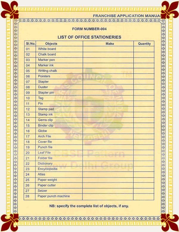 N.B : The complete list of available objects should be furnished with the application form. Additional may be used to provide the complete list of office stationeries.